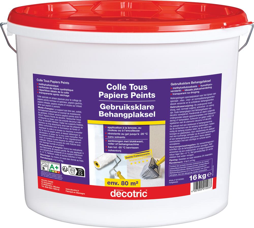 Pour le collage de papiers normaux, spéciaux, intissés, gaufrés, vinyls ou à peindre.