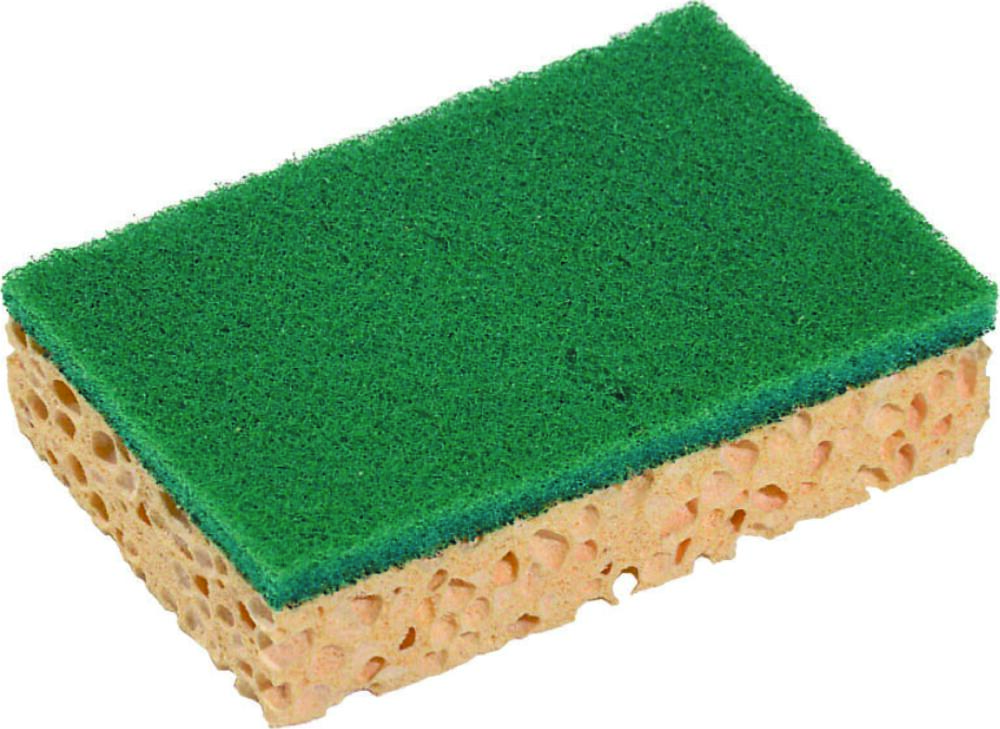 Eponge verte grattante rectangulaire.