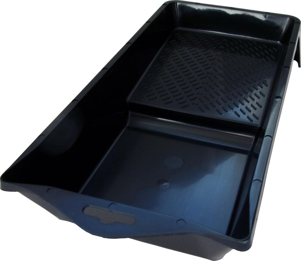 Accueillir et essorer la peinture. Bec verseur. Idéal pour la peinture appliquée avec une perche, bac posé au sol. Facile à nettoyer.