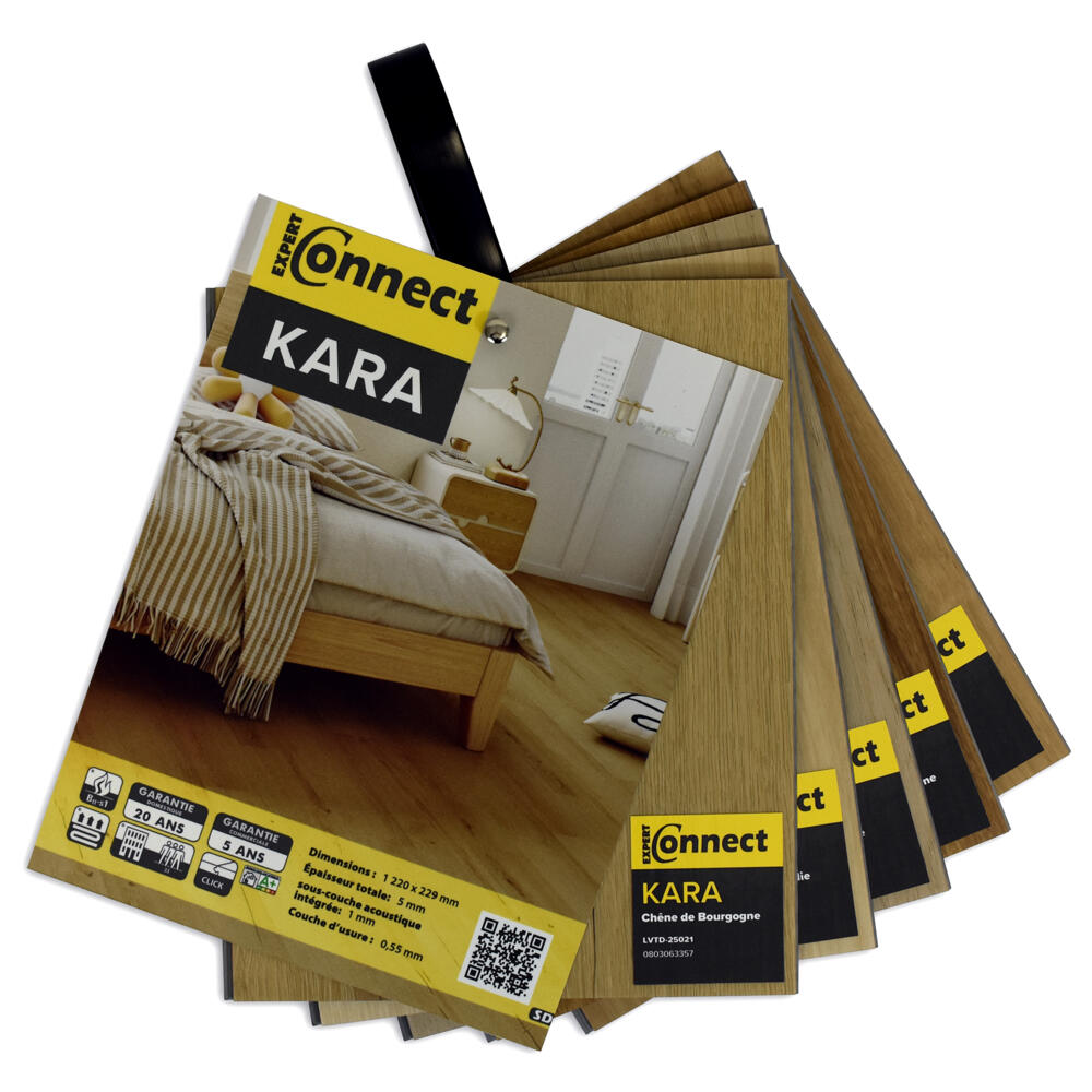 Décors et finitions modernes, avec chanfreins 4V, sous-couche intégrée. Click-à-plat : installation facile et rapide, qualité d'emboitement impeccable.