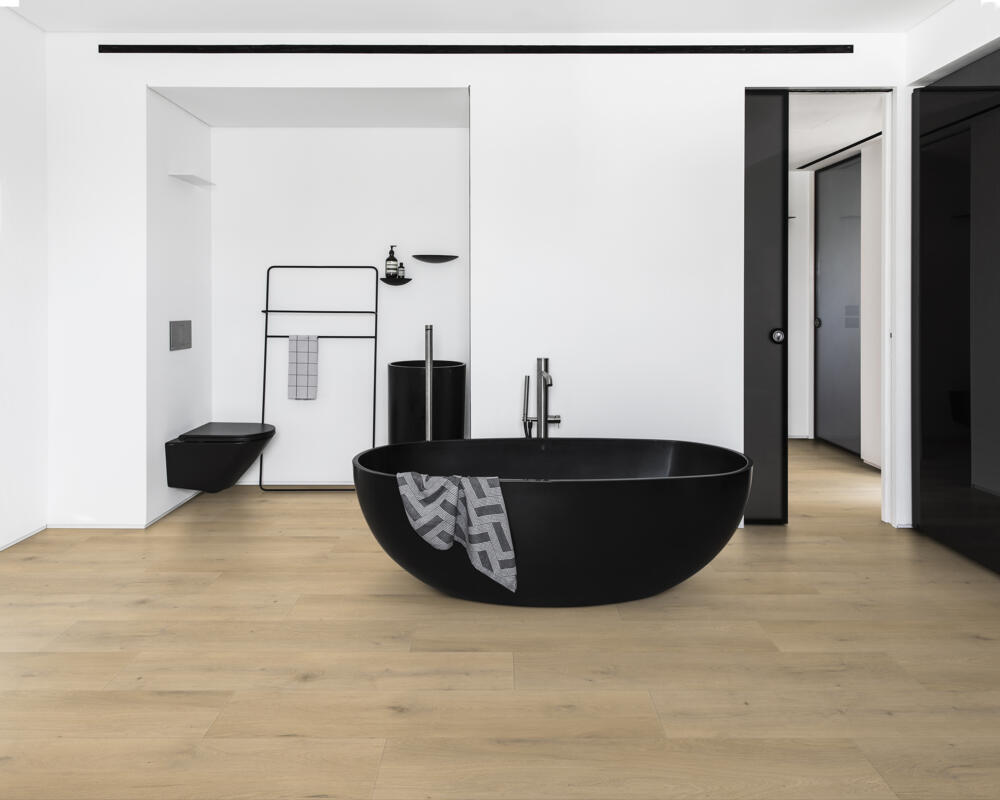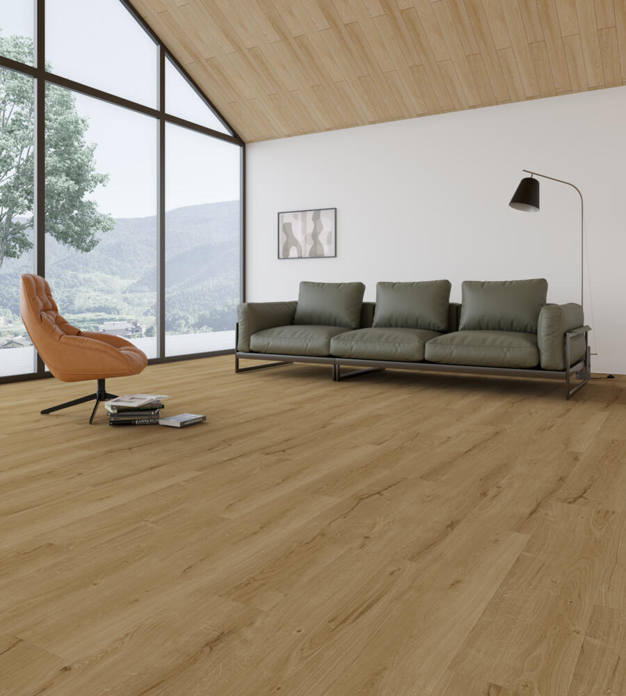Décors et finitions modernes, avec chanfreins 4V, sous-couche intégrée. Click-à-plat : installation facile et rapide, qualité d'emboitement impeccable.